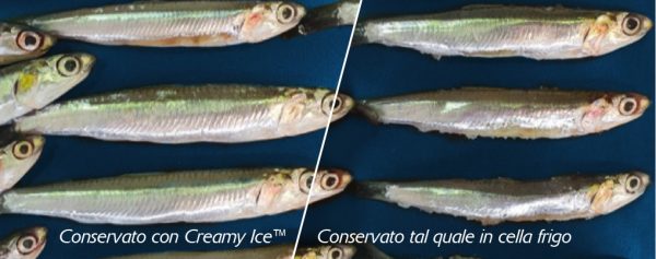 CREAMY ICE™ è il ghiaccio che permette di aumentare la freschezza del pescato portando la freschezza del pesce intatta fino alla tavola dei consumatori. La percezione di una miglior qualità del pesce fresco è evidente, sia sul piano estetico che sul piano del gusto.